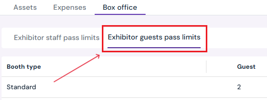 These limits will automatically appear on the Exhibitor Guest Pass Limits page in the Box Office tab once the booth is created.
