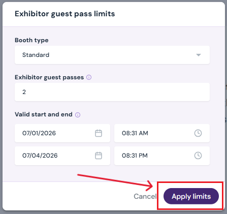 Note: For collaborative events - only the invited producer will be able to set exhibitor guest pass limits.