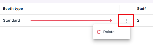 Hover over the entry you want to remove. Click the three-dot menu next to the booth type.