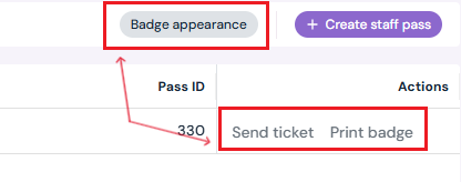 • Send Ticket: Click Send Ticket under the Actions column to email the pass directly to the staff member.