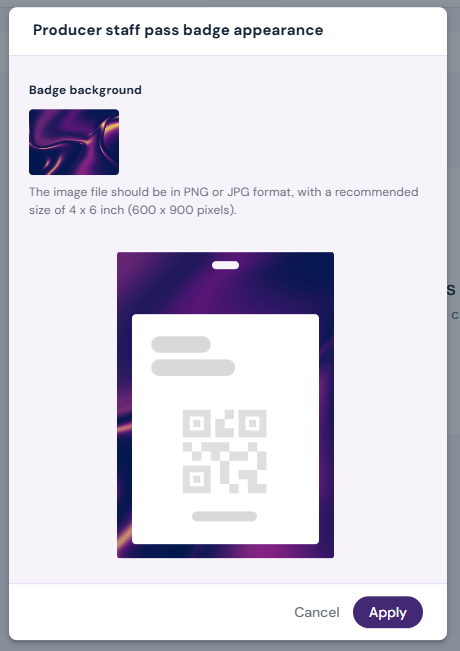• Customize Badge Appearance: Click Badge Appearance at the top of the page to upload a background image for printed badges.