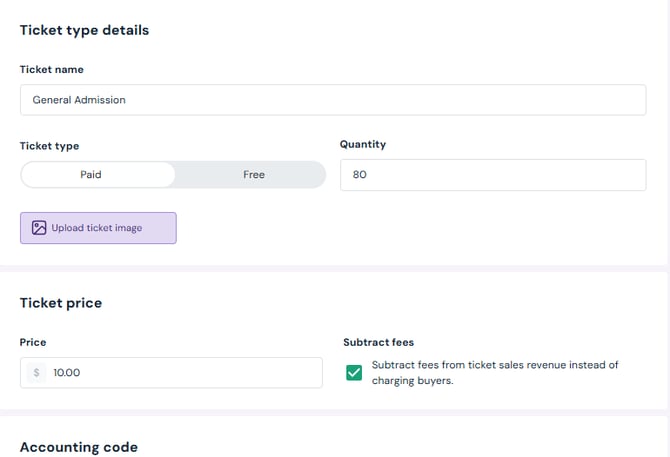 Ticket Type: Toggle between Paid or Free.