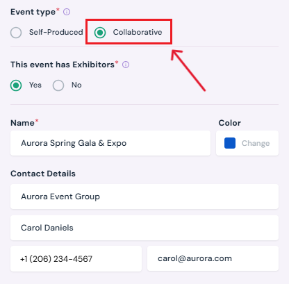 Note: You can skip this step if the event is Self-Produced. Only complete this step for Collaborative Events.