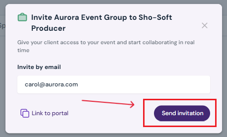 • Reminder: Make sure you selected collaborative for event type and added the client in the event creation pop-up; otherwise, the email field will be blank.