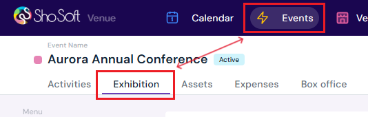 Navigate to the Exhibition section (if you do not see the Exhibitions tab follow the step outlined for adding exhibitions to an event).