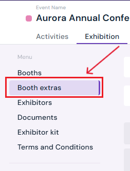 Booth extras let venues (OR producers in collaborative events) provide additional purchasable add-ons like furniture, AV, or services that enhance exhibitor booths.