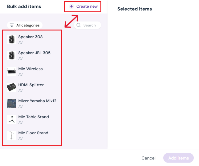 Select from the pre-populated inventory list (based on the Venue’s inventory profile. If you want to add a new permanent inventory item to the list see how to add inventory).