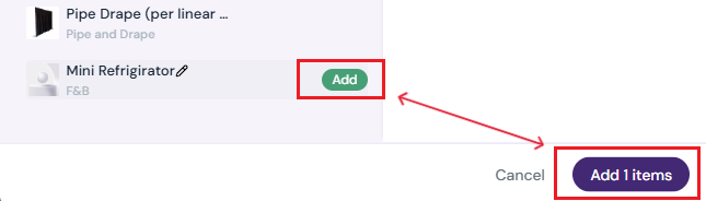 Confirm by clicking the purple Add Item button at the bottom of the pop-up.
