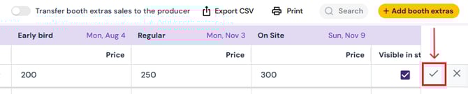 Toggle “Transfer booth extras sales to the producer” accordingly.