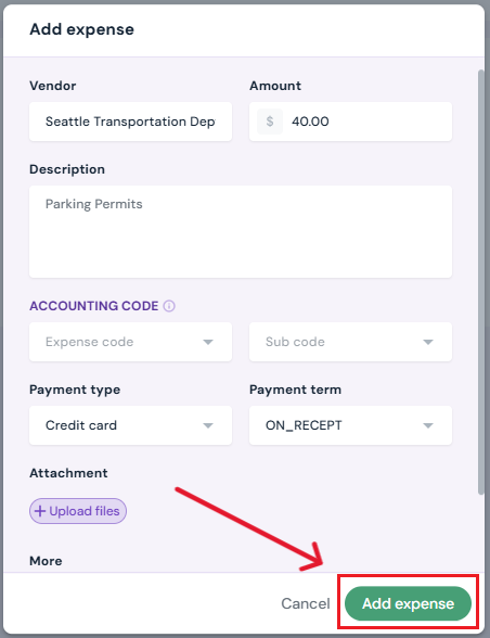 Click the green Add Expense button to complete.
