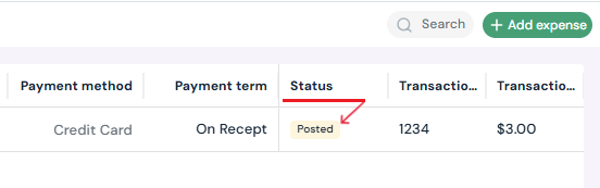 The new expense will appear in the Expenses table with a status (see list of possible statuses below).
