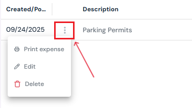 On the Expenses page, click the three-dot menu next to the entry.