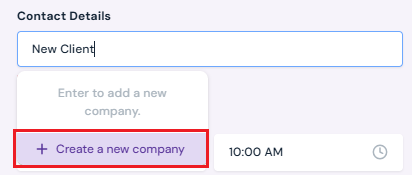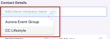 - From the drop down, add an existing client from your Clients list (see how to add clients to your venue profile) OR create a new client directly for the event in the event creation pop-up. (Any new client you create here will be automatically added to your Clients list in Sho-Soft).