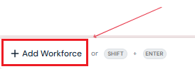 1. At the bottom of the chart, click Add Workforce or use keyboard shortcut Shift + Enter.