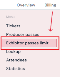 2. Select Exhibitor Passes Limit from the side menu.