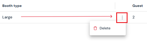 2. Hover over the entry you want to remove. Click the three-dot menu next to the booth type.