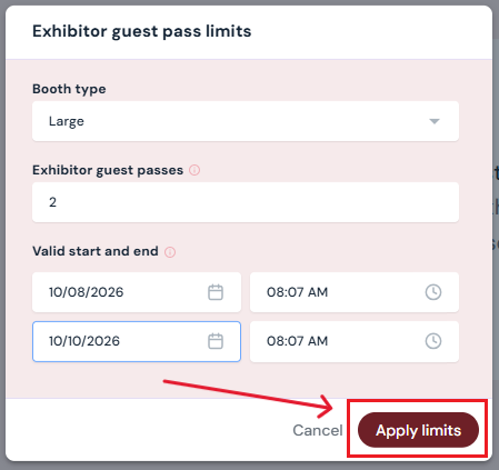 Set and manage exhibitor guest pass limits to regulate how many guests each exhibitor can invite to your event.