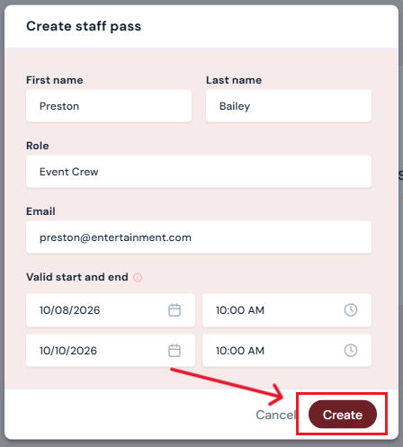 Create and manage staff passes to grant event access to your team members and collaborators.