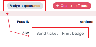 - Send Ticket: Click Send Ticket under the Actions column to email the pass directly to the staff member.