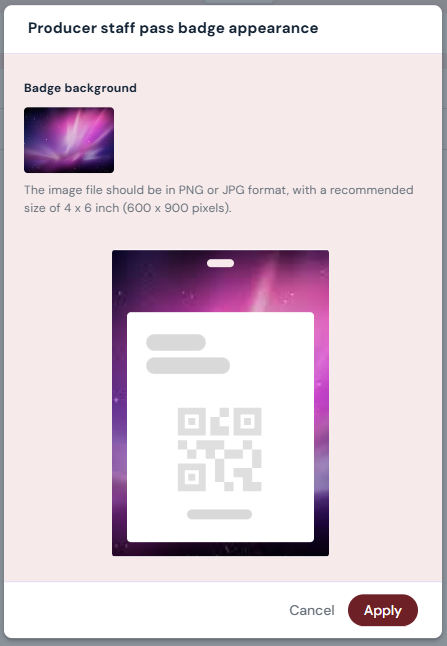 - Customize Badge Appearance: Click Badge Appearance at the top of the page to upload a background image for printed badges.