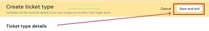 • Click Save and Exit at the top of the page. The new ticket type will now appear in the chart on the main Tickets tab.