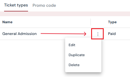 To speed up setup, you can duplicate an existing ticket type and modify only the necessary fields (e.g., name, quantity, or pricing).