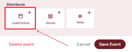 In the event creation pop-up, under Distribute, click the Load In/Out button.