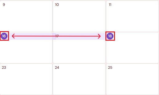 1. On the calendar, select the start date and then select the end date of the event.