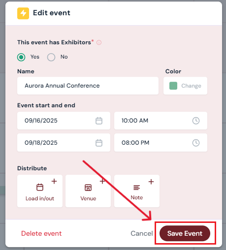 4. Click Save Event to confirm changes.