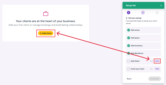 1. Click the Start button next to Add Client on the setup list pop-up (bottom right corner).