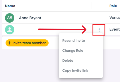 Tip: If a team member doesn’t receive their invite email, you can copy invite link directly from the three-dot menu and send it to them manually.