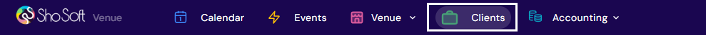 The Clients tab in Sho-Soft is where you manage all of your client relationships. From storing contact information to tracking multiple points of contact, the Clients tab ensures your team has quick access to the details needed for smooth communication and event coordination.