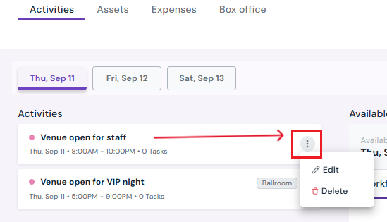 Click the three-dot menu next to the name of the activity you want to edit.