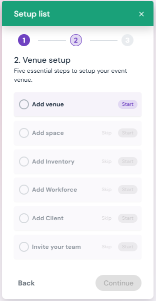 Venue Setup List