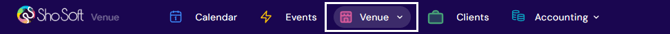 The Venue tab in Sho-Soft is where you manage all of your venue’s core resources. From spaces and workforce to inventory, vendors, and team members, the Venue tab provides a central place to keep information organized and accessible for scheduling and event management.